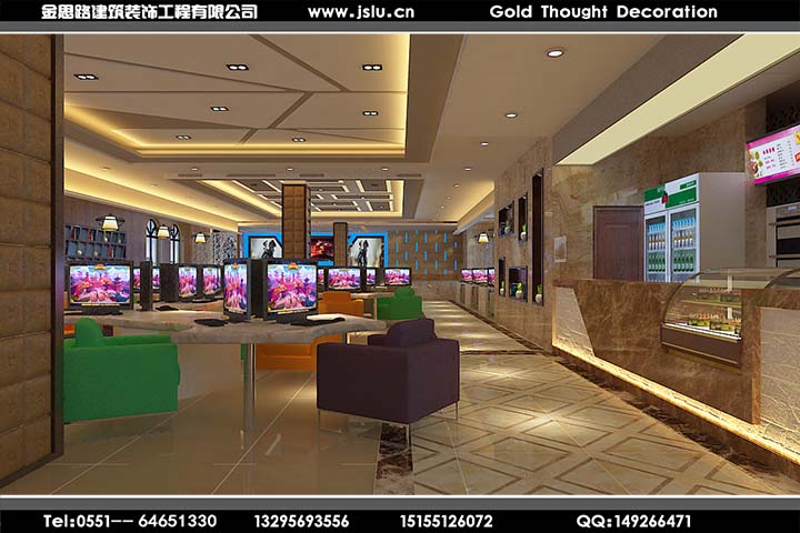 金思路裝飾,設(shè)計施工國家二級資質(zhì),安全生產(chǎn)許可證持有單位,專注工裝設(shè)計20年,專業(yè)值得信賴!金思路裝飾打造全新網(wǎng)咖模式,全新設(shè)計理念,以網(wǎng)咖運(yùn)營為設(shè)計核心,一站式為您服務(wù),給用戶帶來好的體驗。我們做好每一個網(wǎng)吧設(shè)計服務(wù)環(huán)節(jié),力求精致,發(fā)揮團(tuán)隊精神提供優(yōu)質(zhì)的網(wǎng)吧裝修設(shè)計服務(wù),打造令您滿意的作品!